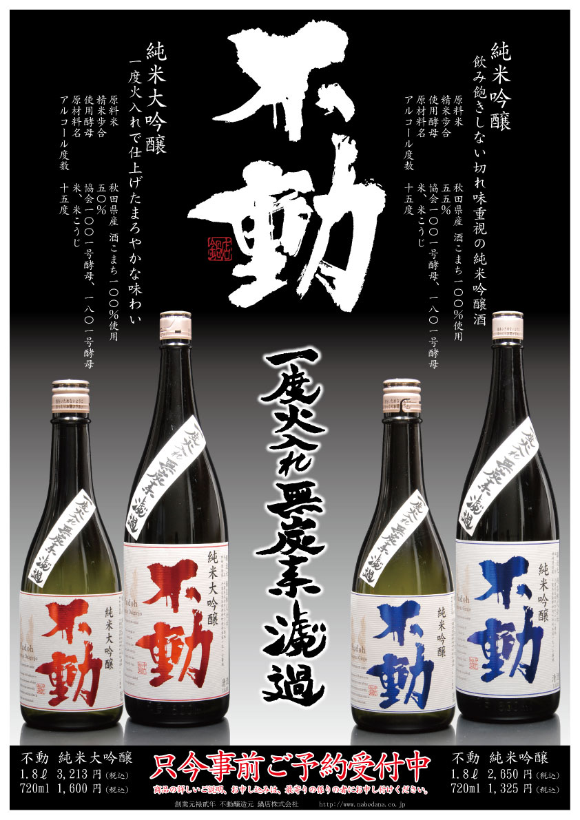 不動 一度火入れ 無炭素濾過 純米吟醸