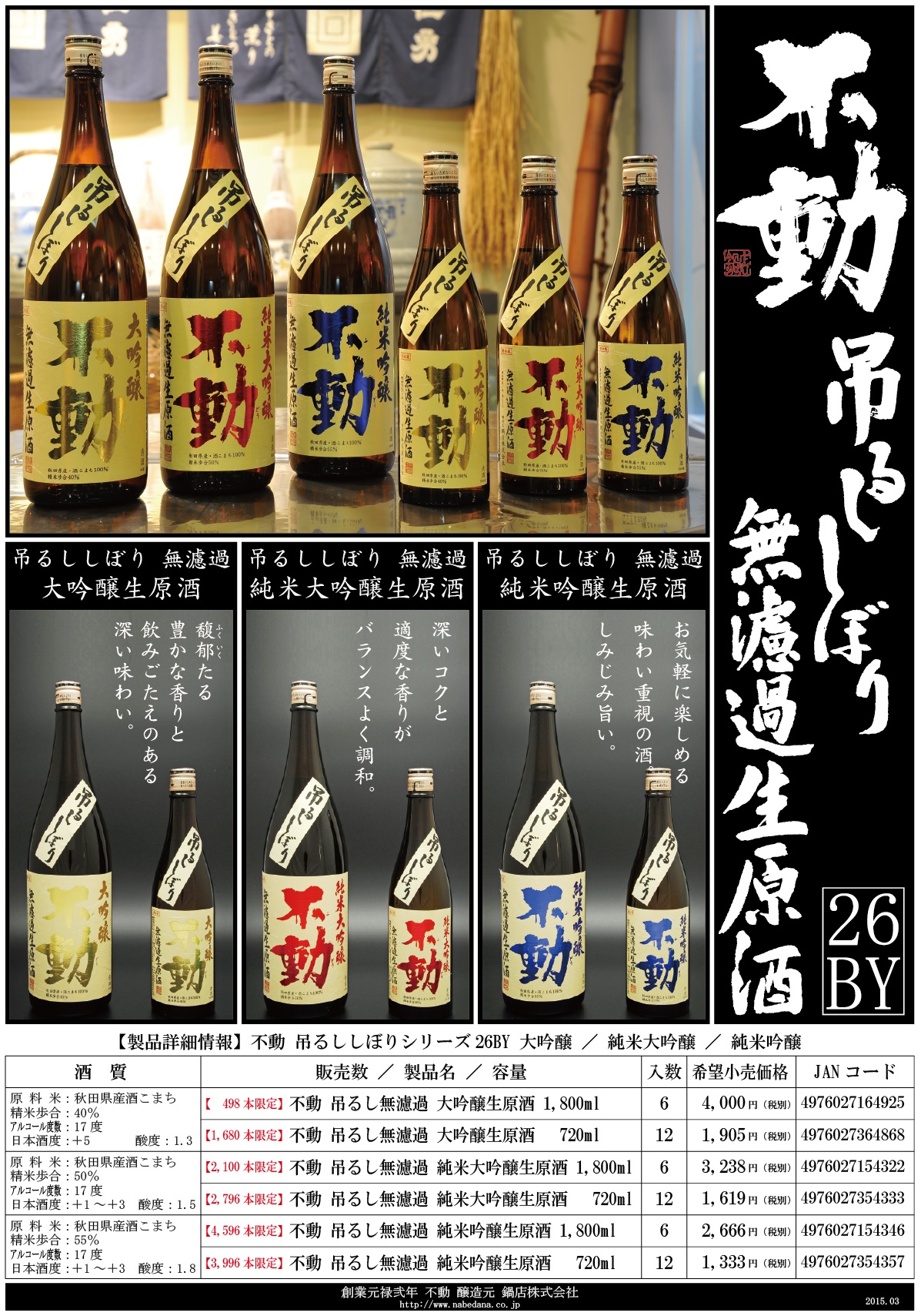不動シリーズフラッグシップ製品「不動吊るししぼり」シリーズ26BYを、4月8日(水)より 数量限定で出荷開始致します。
