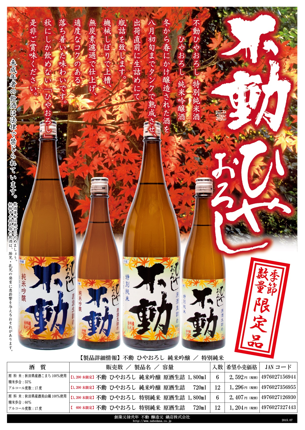 不動 ひやおろし 生詰原酒 特別純米
