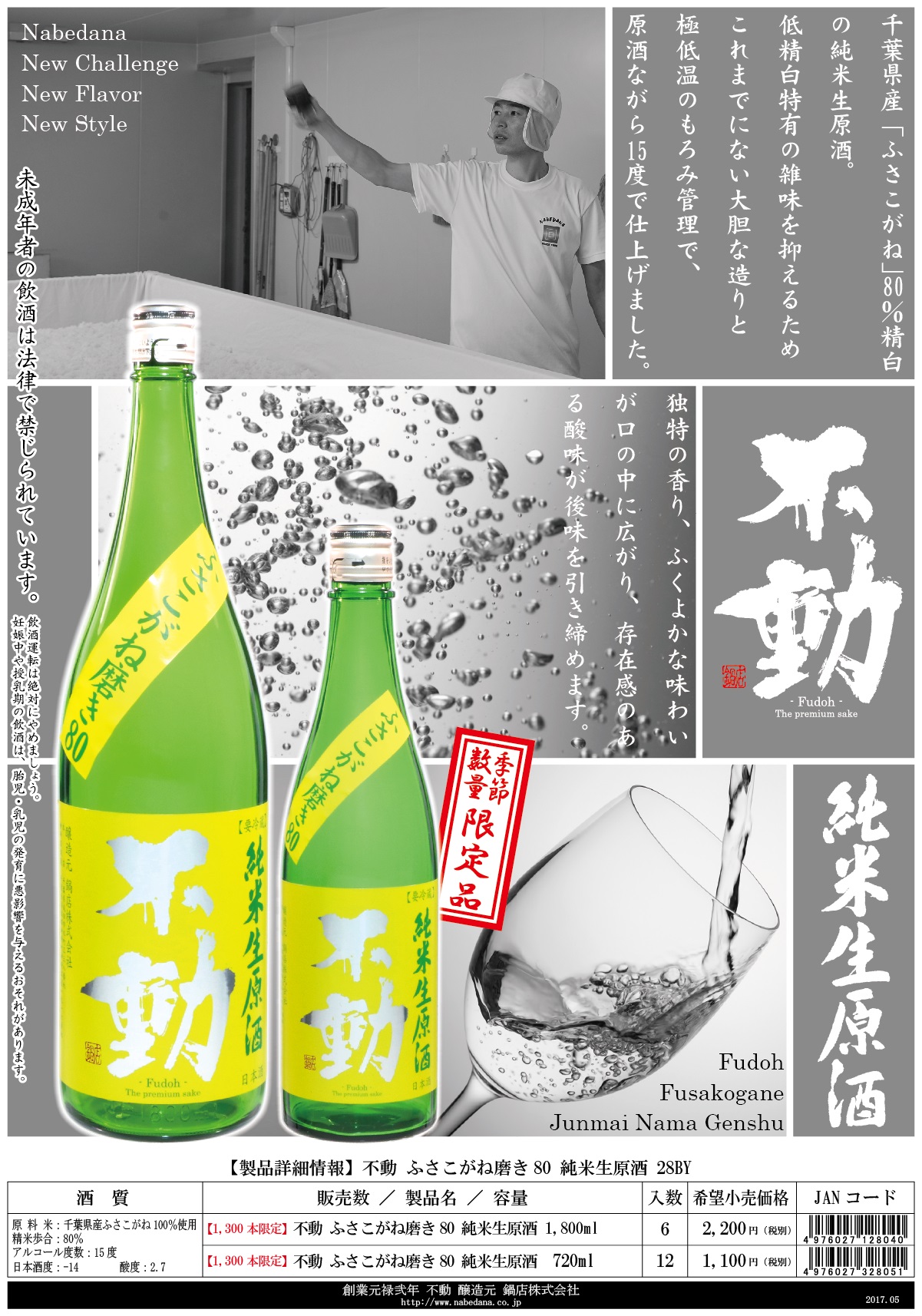 不動 ふさこがね磨き80 純米生原酒 1800ml 小売価格 2,200円 1,300本 限定販売