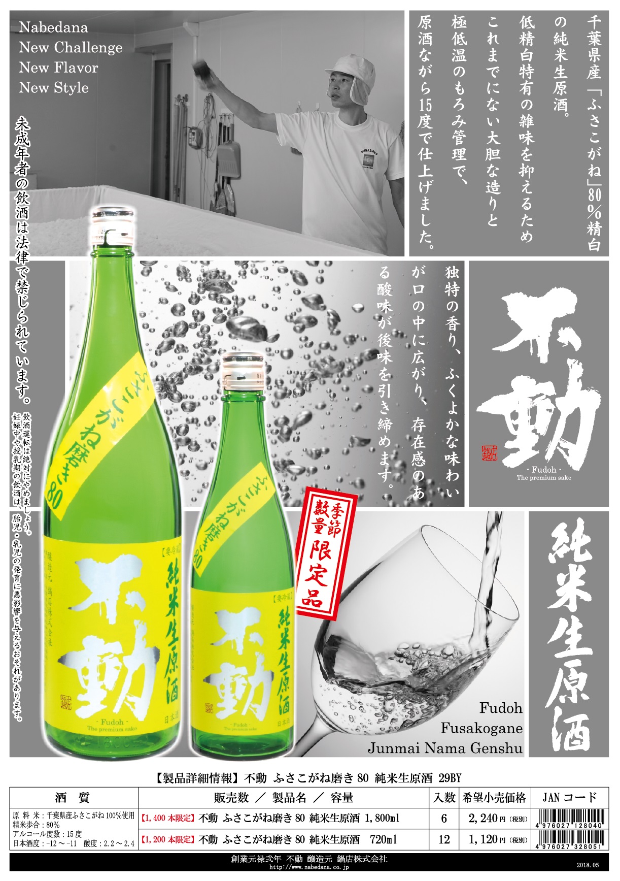 不動 ふさこがね磨き80 純米生原酒 1800ml 小売価格 2,240円 1,400本 限定販売