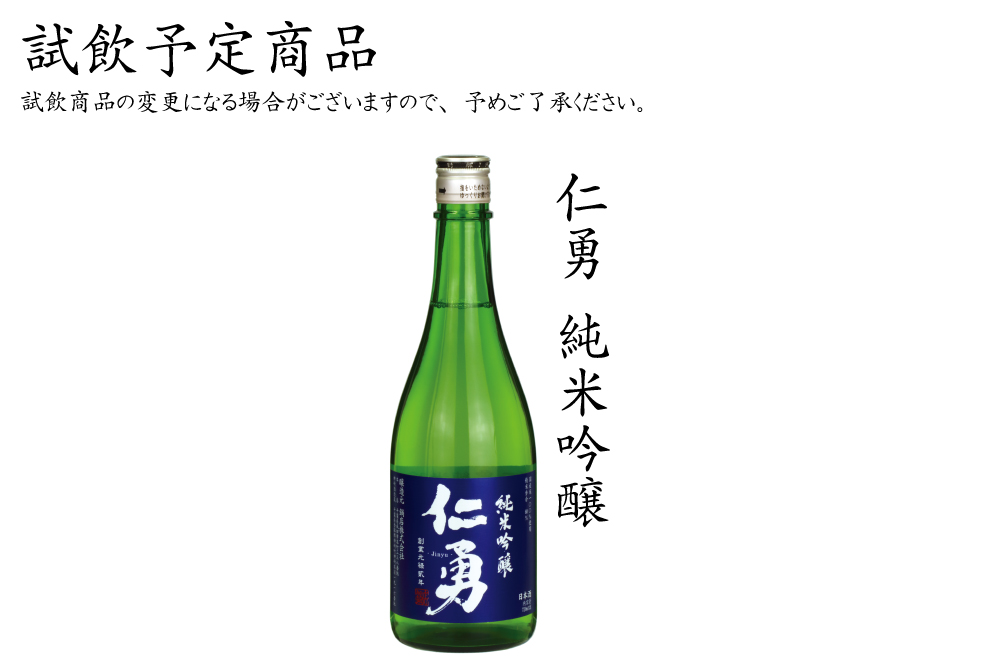 【試飲予定商品】仁勇純米吟醸 等試飲商品は変更になる場合がございますので、予めご了承ください。